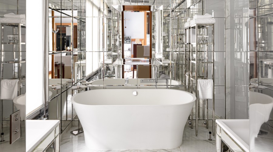 Les chambres et suites prolongent cette vision contemporaine : volumes généreux, lignes épurées, palettes sobres relevées de détails graphiques. Les salles de bains, ouvertes et spectaculaires, deviennent de véritables espaces de vie, baignés de lumière naturelle. Certaines suites, pensées comme des appartements parisiens, offrent terrasses, salles à manger privées ou vues sur les toits de la ville.