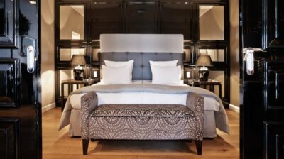 A l’intérieur, c’est une décoration contemporaine et élégante, un mobilier moderne et des couleurs épurées, qui prédominent. De nombreuses œuvres d’art contemporain sont également éparpillées au sein de l’établissement, ajoutant un cachet supplémentaire à l’hôtel.