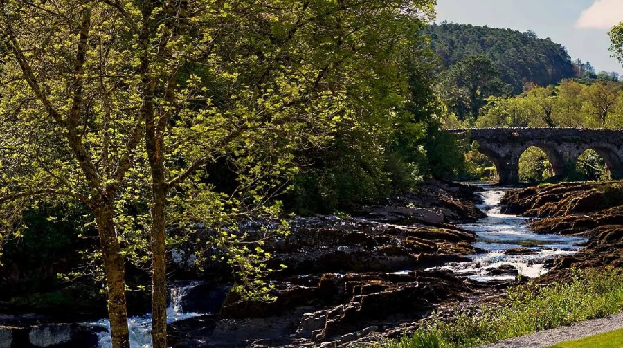 Le domaine, vaste et soigneusement entretenu, invite à la flânerie. Sentiers forestiers, berges de la rivière et perspectives sur les montagnes de la péninsule de Beara composent un décor propice aux instants de retrait comme aux découvertes actives. Le spa, installé dans un bâtiment lumineux tourné vers la nature, prolonge cette parenthèse avec des soins inspirés des éléments irlandais, tandis que la pêche au saumon, véritable institution, relie la maison à une histoire ancienne, presque initiatique.
