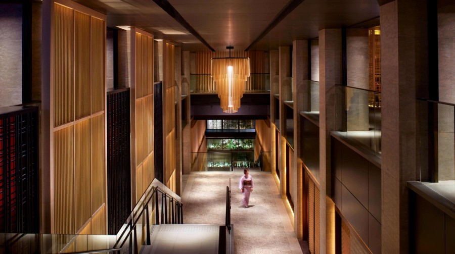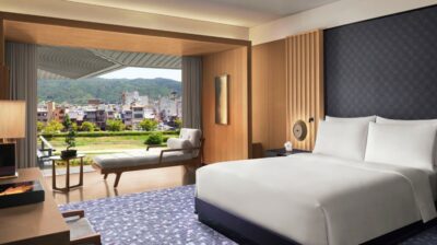 Au bord de la rivière Kamogawa, à quelques pas des ruelles feutrées de Gion, The Ritz-Carlton Kyoto cultive une forme de retenue toute japonaise. L’architecture contemporaine, pensée comme un dialogue avec les machiya traditionnelles, s’efface derrière des jardins intérieurs, des jeux d’eau et des lignes pures qui rappellent l’esthétique des temples voisins.