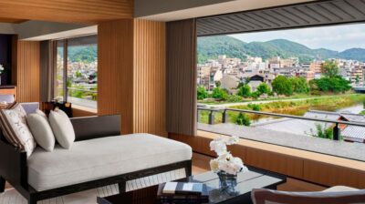 À l’intérieur, le regard se pose sur des panneaux de washi, des laques délicates, des touches d’or qui évoquent l’école Rinpa. Chaque détail semble répondre à l’histoire artistique de Kyoto, ancienne capitale impériale, sans jamais céder à l’ostentation. Les chambres et suites, vastes et baignées de lumière, s’ouvrent pour certaines sur la rivière ou sur les collines de Higashiyama, offrant un spectacle changeant au fil des saisons, des cerisiers en fleurs aux érables flamboyants.