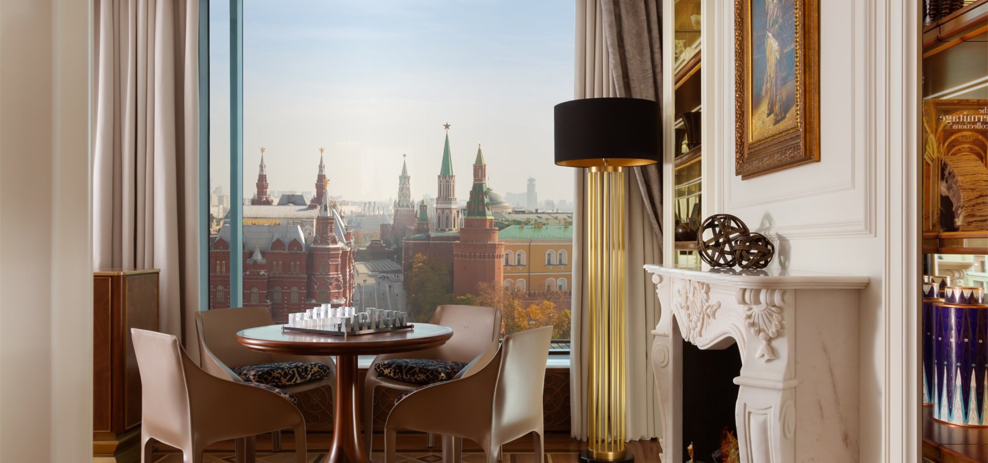 Outre une situation géographique exceptionnelle (le Ritz-Carlton est situé au centre des principaux édifices de la capitale que sont le Kremlin, le Théâtre Bolchoï ou la Place Rouge… et des boutiques commerçantes), le O2 Lounge, situé sur le toit de l'établissement, offre une vue splendide de la Place Rouge.